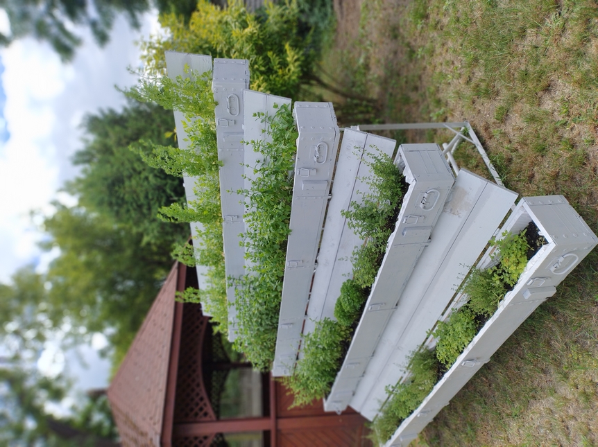 Gdy pewna myśl wystarczająco mocno zakorzeni się w głowie, podlewana codziennym wspomnieniem kiełkuje, wzrasta działaniem, aż w końcu rozkwita efektem. Tak właśnie powstał w naszym ogrodzie zielnik. Z pozoru zwykły. A jednak… Za donice posłużyły, pozyskane przez Panią Dyrektor, skrzynie po pociskach rakietowych. Pan Marek przygotował stelaż – mozolnie spawając go z kątowników. Doborem ziół i posadzeniem ich kierowała nasza wspaniała terapeutka – Pani Agnieszka. I tak oto wspólny wysiłek urzeczywistnił zrodzoną po cichu ideę. A zielnik cieszy zmysły nas wszystkich. O potrawach wzbogaconych świeżymi ziołami nie wspominamy.
